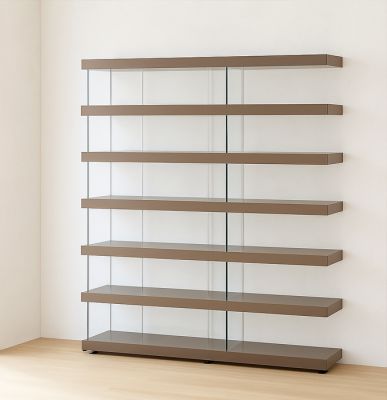 The Air bookcase, in glass, seems to float in the air, letting the light filter through and giving a feeling of extreme lightness to the environment. The shelves are fixed to the glass by means of an interlocking process, which guarantees maximum safety and stability to the structure.
