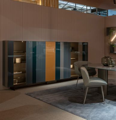 l ritmo delle fasce verticali della Madia N.O.W. modifica la percezione convenzionale dei volumi contenitivi e cela un’apertura brevettata e inalterabile nel tempo. Le ante in vetro trasparente bronzato, lavorate a 45° e integrate senza elementi di supporto visibili, ...